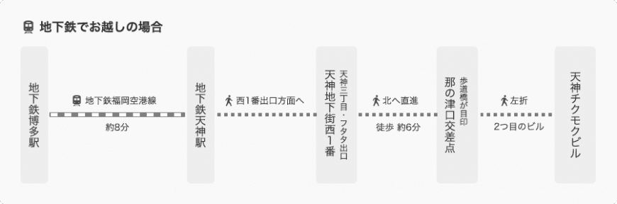 - 天神周辺から徒歩でお越しの場合