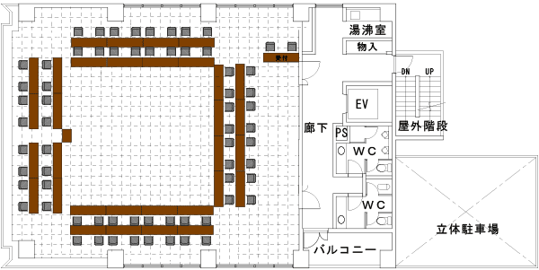 収容人数100~200名の大ホール。セミナー・講演会・試験会場におすすめです。
