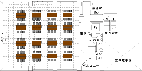 レイアウト別の収容人数スクール2名掛け:100名3名掛け:150名