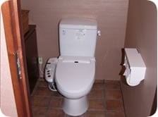 オレンジ色を基調とした女性用トイレ